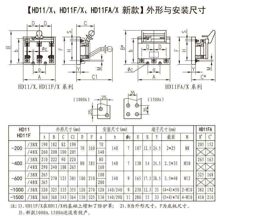 规型号有:HD11-200/38,HD11-400/38,HD11-600/38,HD11F-100/38,HD11F-200/38,HD11F-400/38