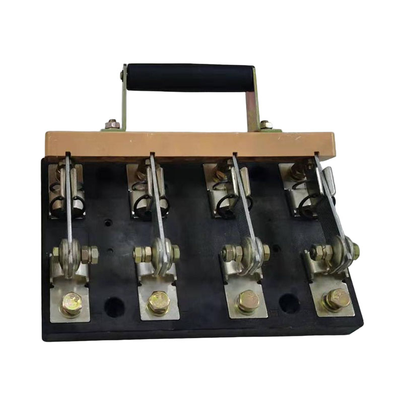 ● 刀开关200.400A采用单刀片、600.1000.1500A采用双刀片、2000.3000.4000A采用两组双刀片并联组成,所有刀片二侧装有片装弹簧以取得触头压力,且刀片、联接板、触头皆镀锡,用来加强表面保护和改善导线连接时的接触电阻。