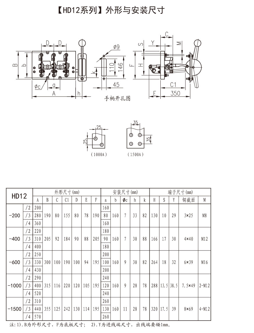 HD12、HS12系列侧方正面杠杆操作机构式刀开关关主要用于正面操作、前面维修的开关柜中,操作机构装在开关柜的两侧。