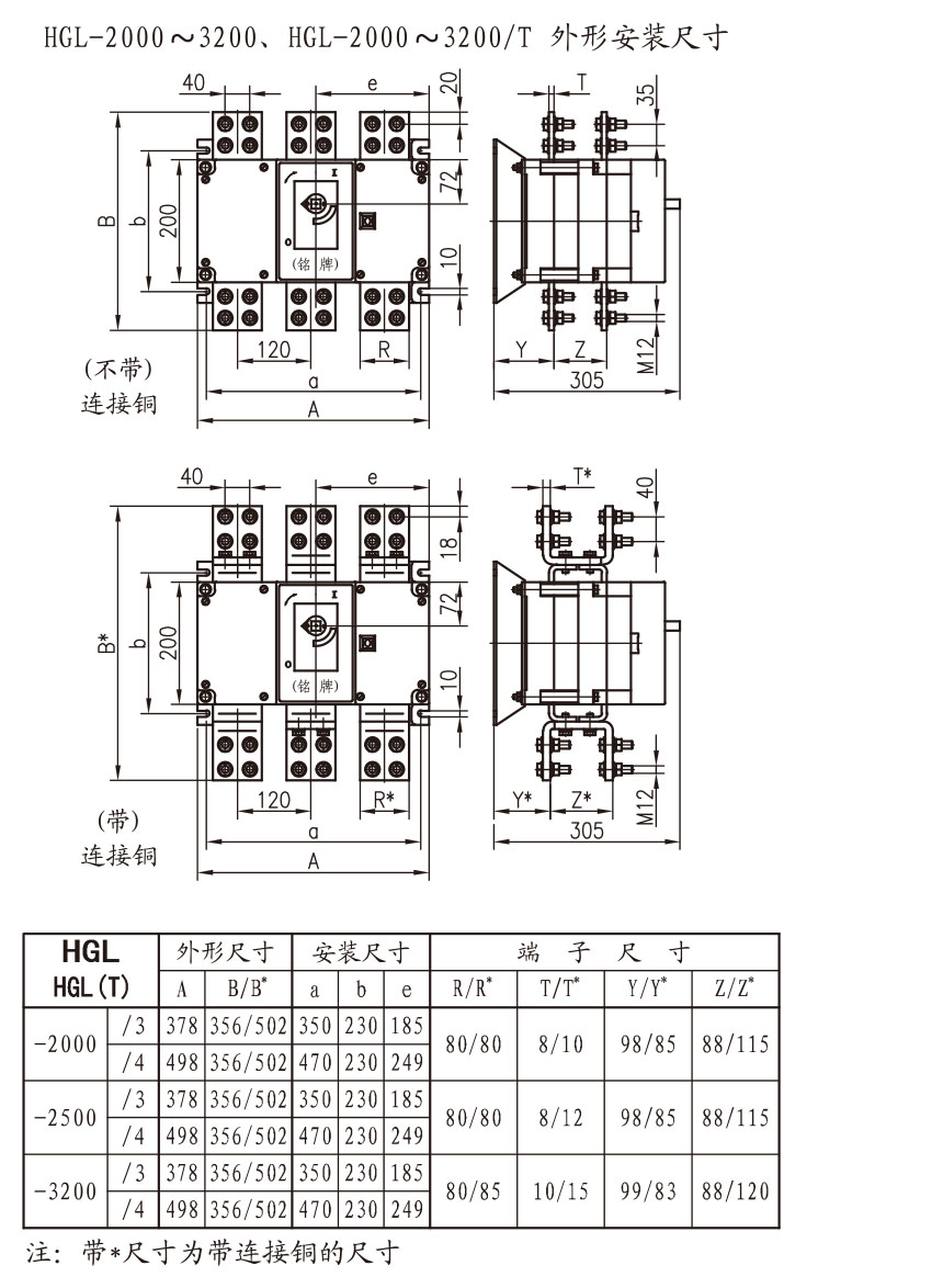 HGL系列隔离开关(以下简称为开关),适用于交流50Hz、额定电压400V、约定发热电流至3200A的工企业配电设备中,用作不频繁接通与分断电流及电气隔离之用(1000A以上只用作电气隔离),广泛应用于建筑、电力、石油化工及其他行业的配电系统和自动化系统中。