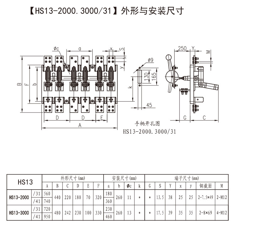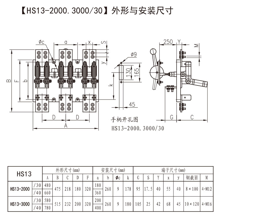 HD13、HS13系列中央正面杠杆操作机构式刀开关主要用于正面操作、后面维修的开关柜中,操作机构装在开关柜的正前方。